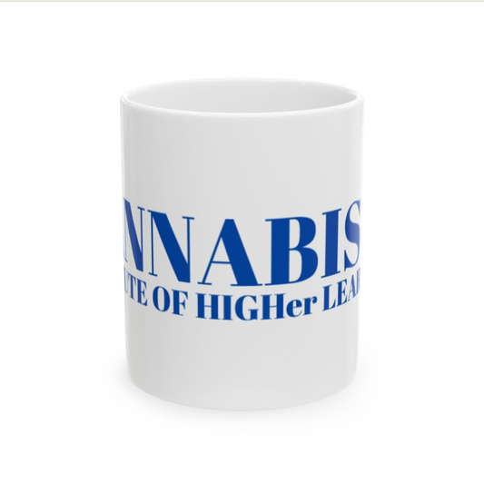CANNABIS-U INSTITUTE OF HIGHer LEARNING® Mug (Large Blue Text)